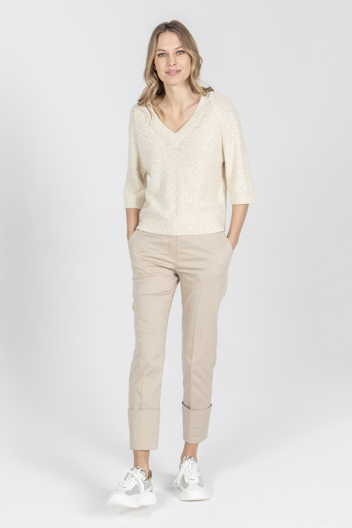 Beżowy sweter z dekoltem V