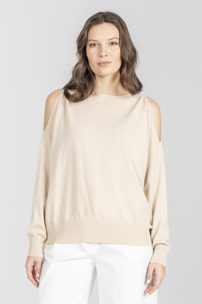 Beżowy sweter z rozcięciami na rękawach