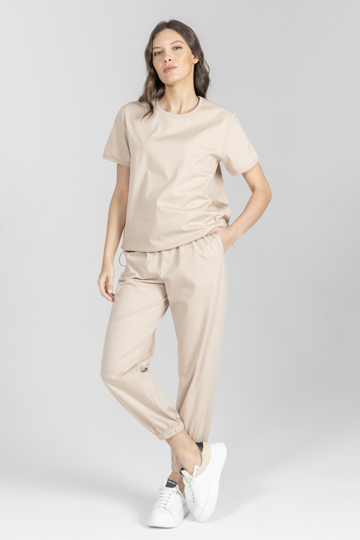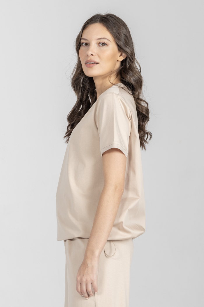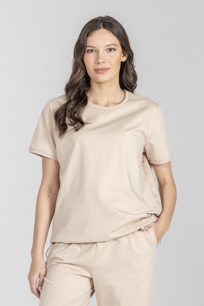 Beżowy t-shirt z okrągłym dekoltem