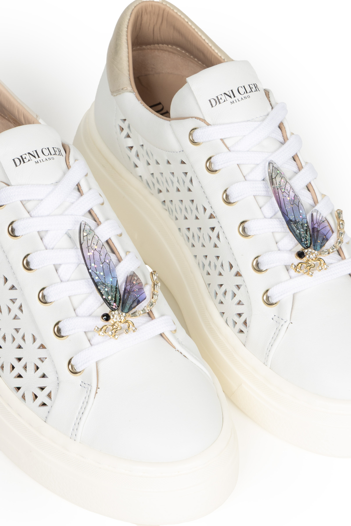 Białe sneakersy z odczepianą ozdobą