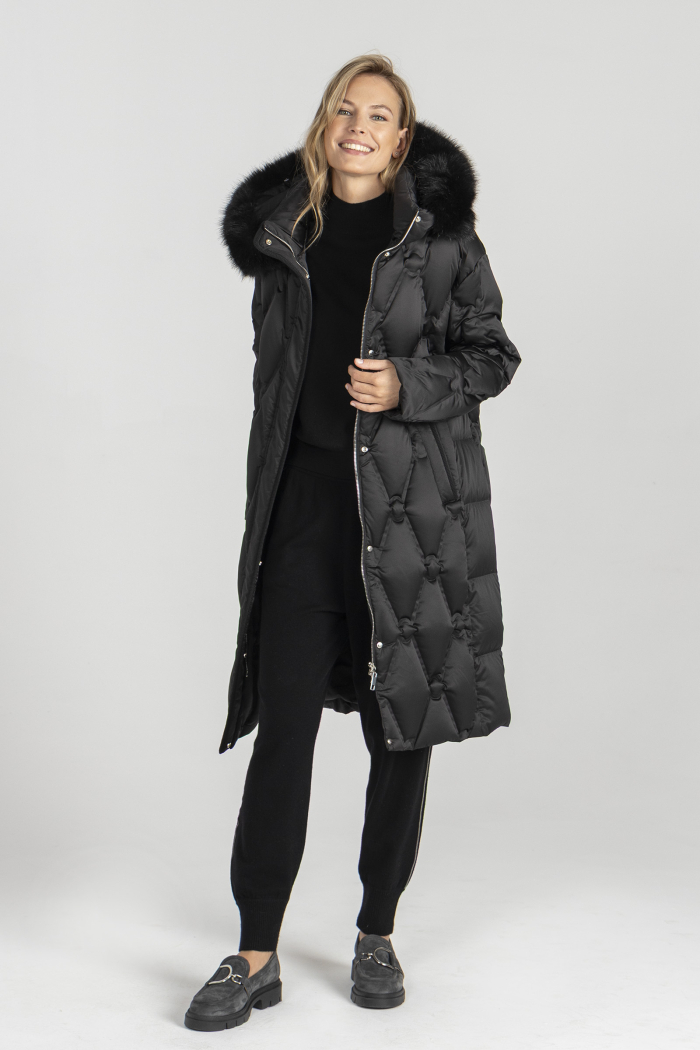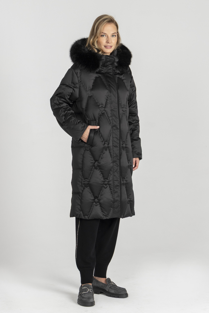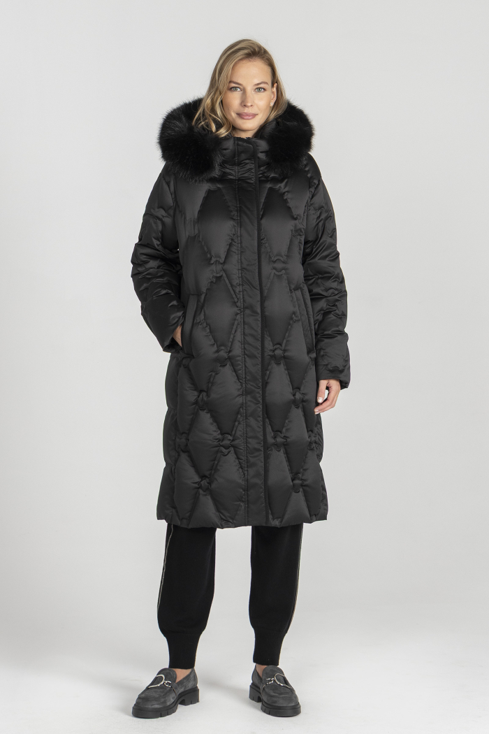 Czarna kurtka puchowa z ozdobnym pikowaniem