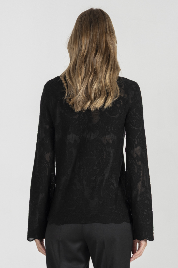 Czarny elegancki sweter z lekko rozszerzanym mankietem