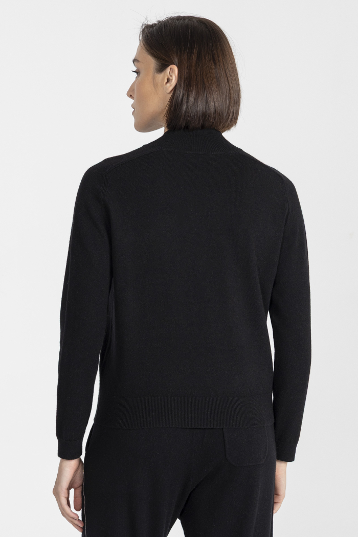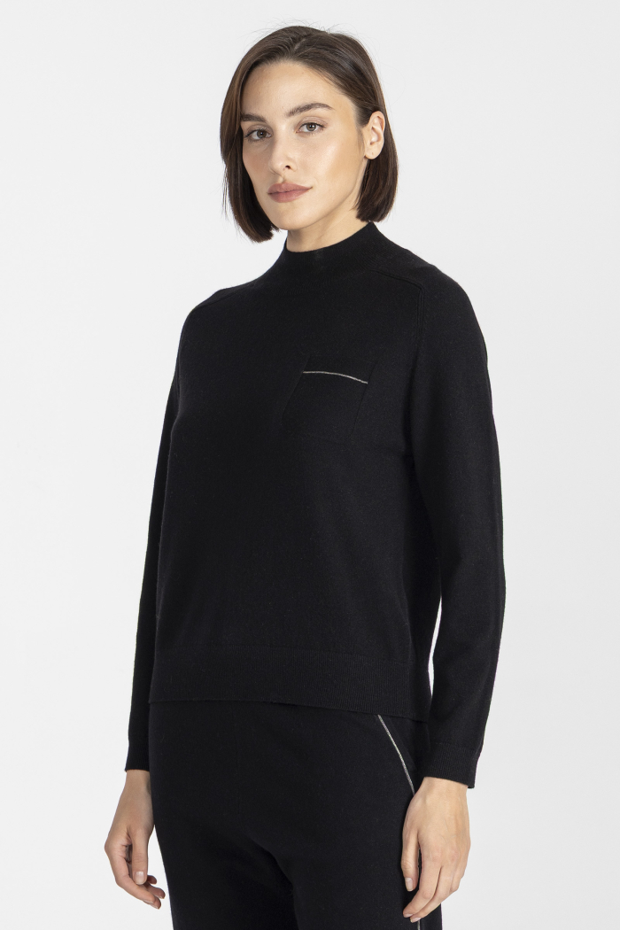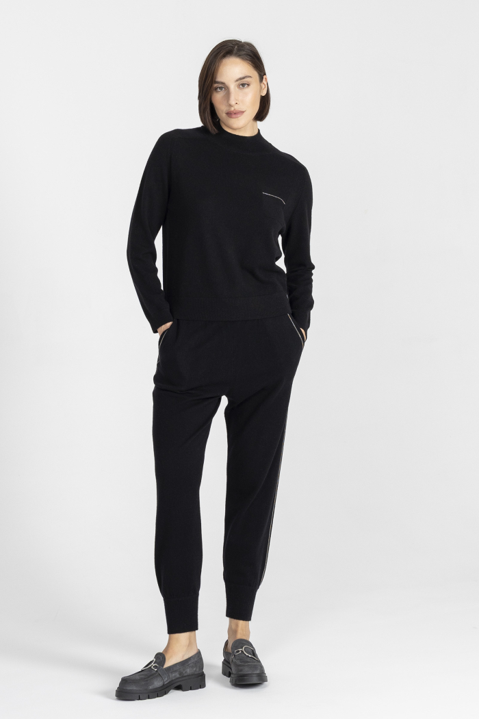 Czarny sweter z wełny i kaszmiru z delikatnym zdobieniem