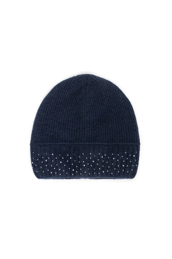 Granatowa czapka ozdobiona kryształkami