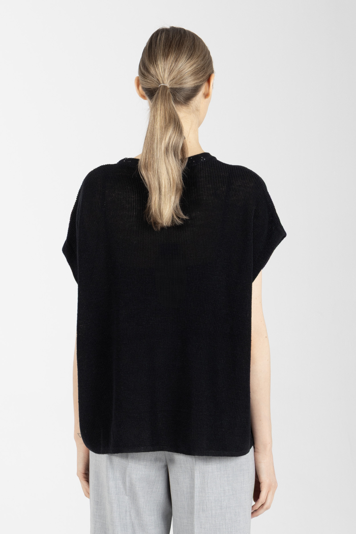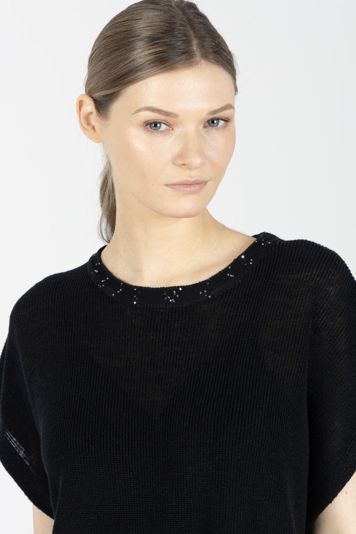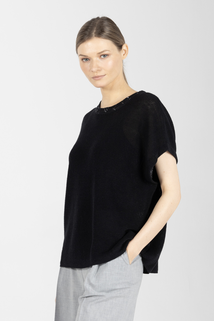 Lekki sweter z krótkim rękawem w kolorze czarnym