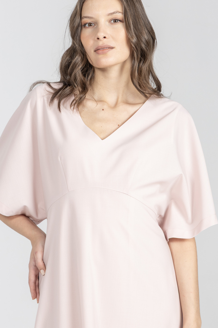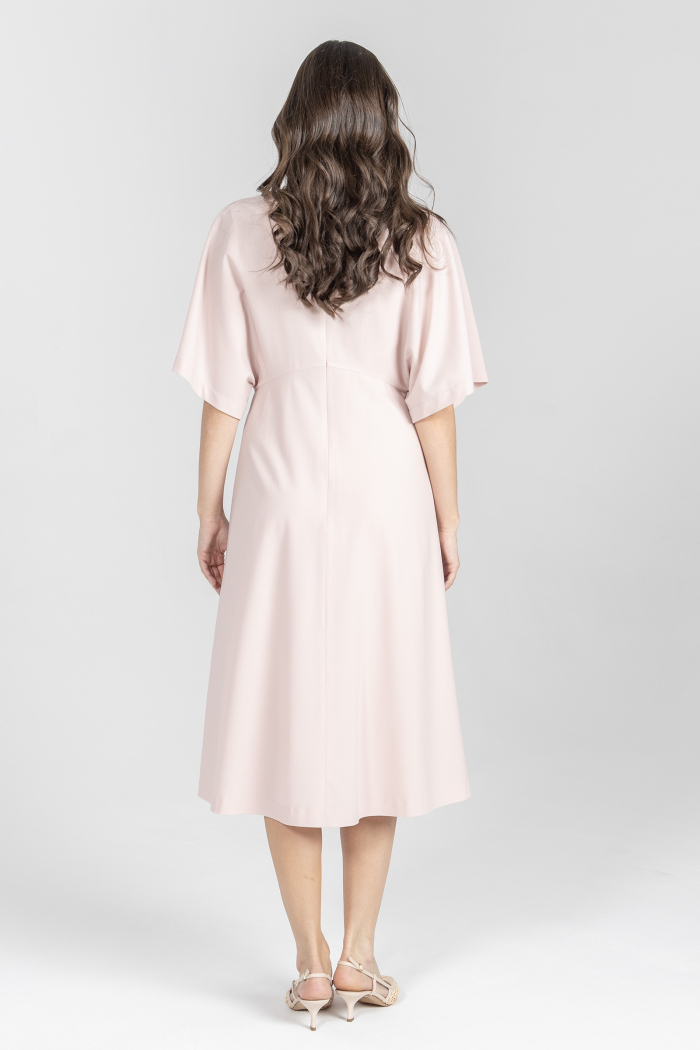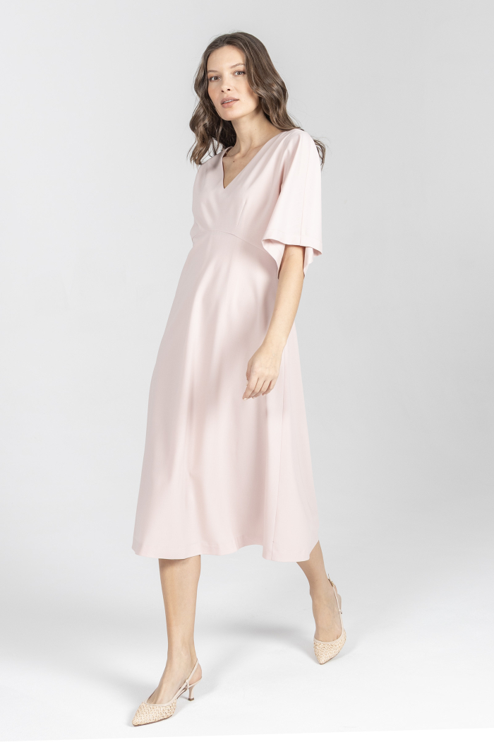 Różowa sukienka z szerokim rękawem