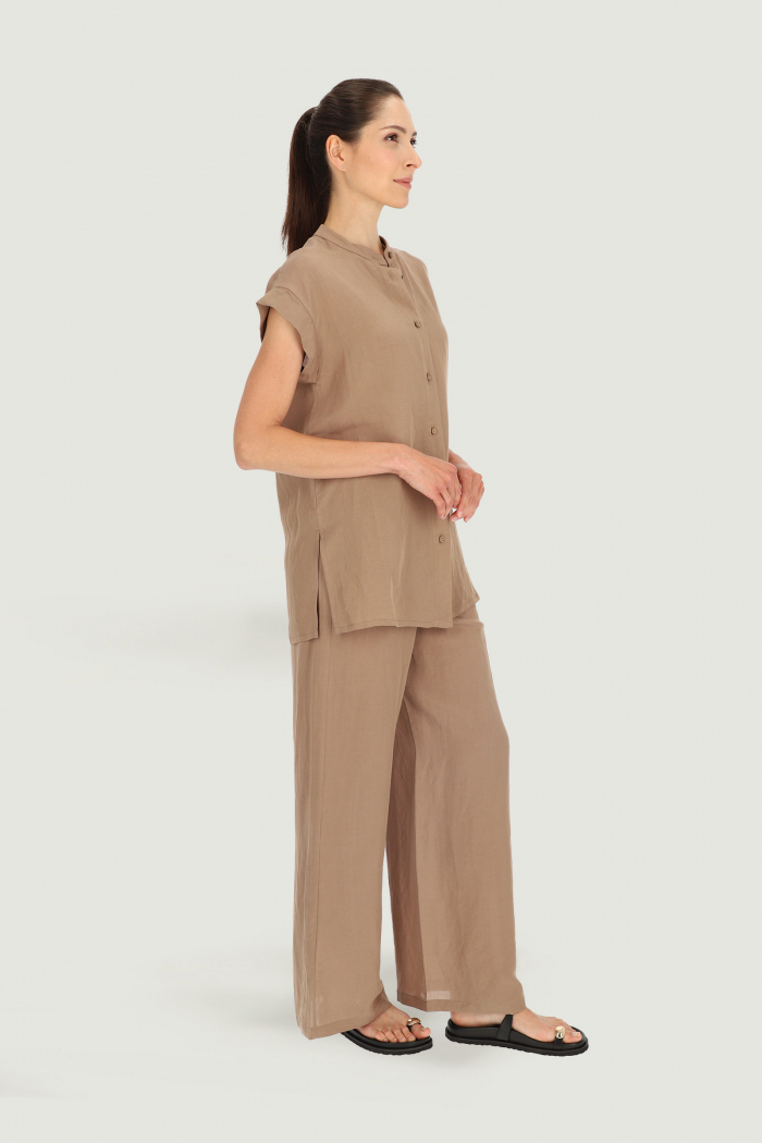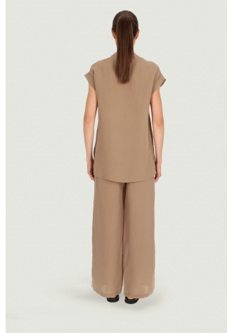 Beigefarbene Bluse mit Stehkragen