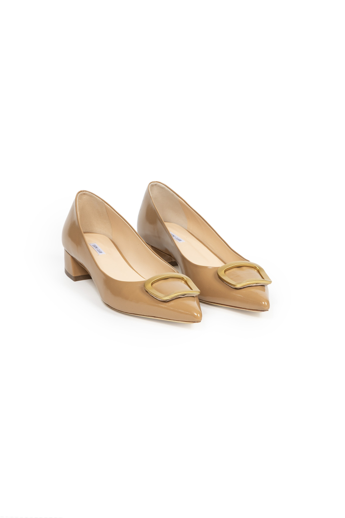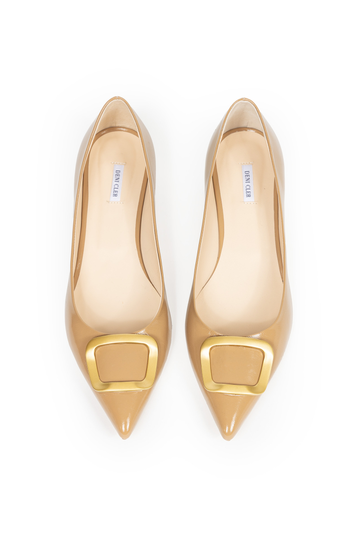 Beżowe baleriny ze złotą klamrą