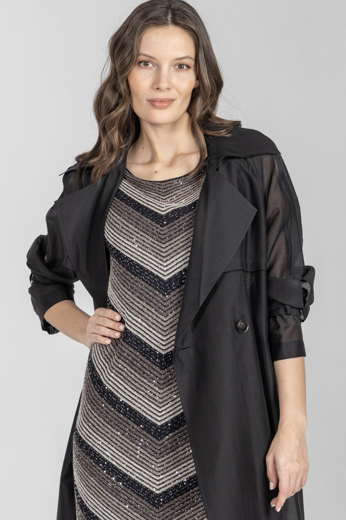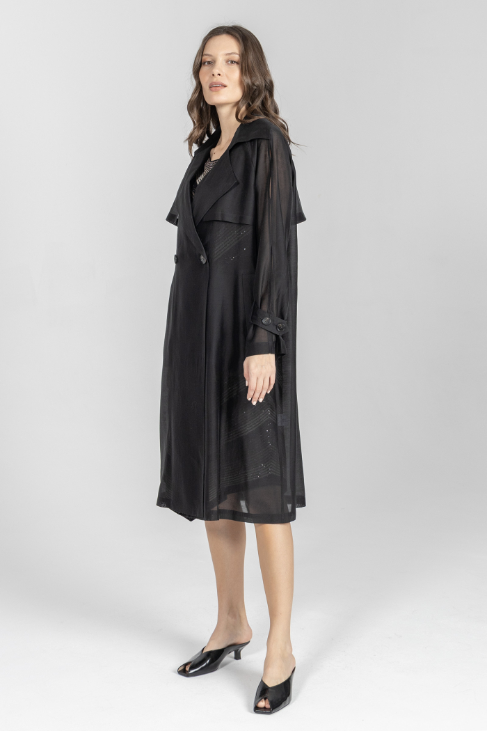 Czarny lekki płaszcz z półprzeźroczystej tkaniny