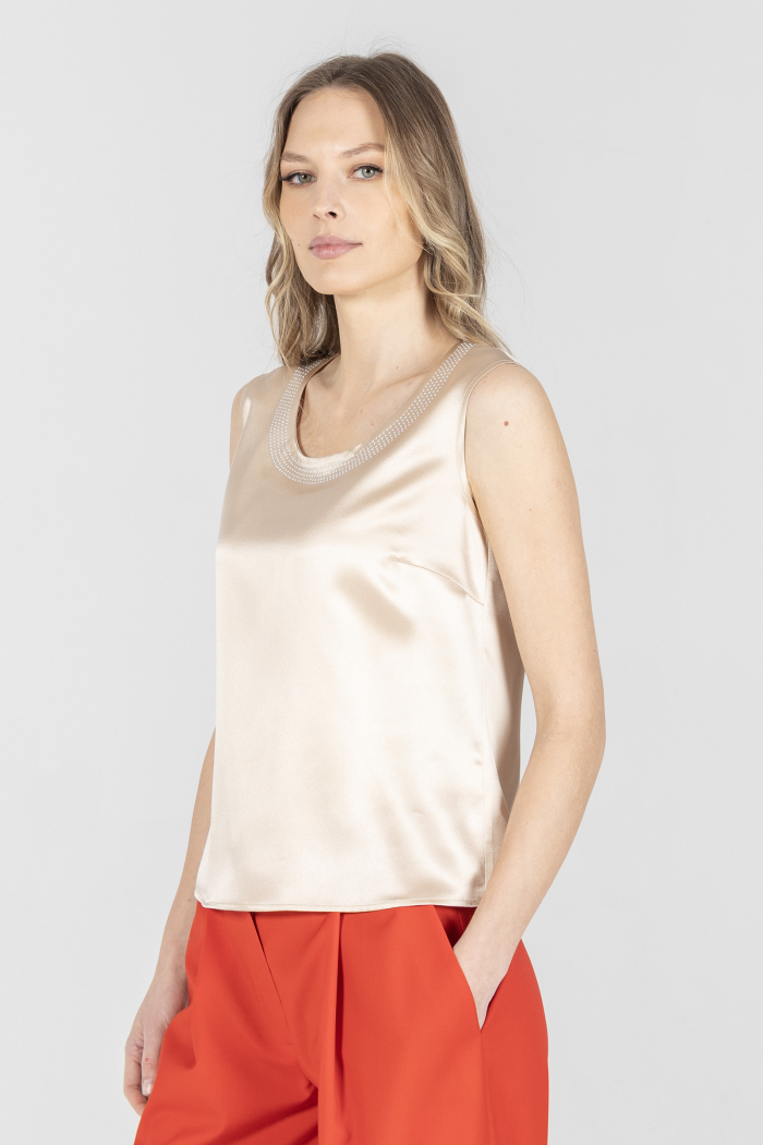 Elegancki beżowy top z jedwabiu