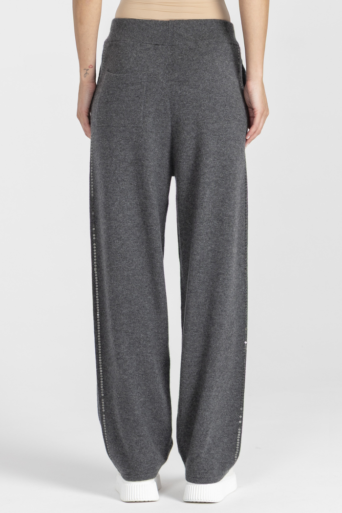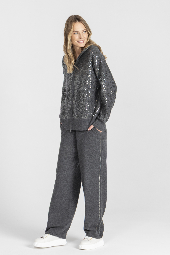 Szare luźne spodnie ozdobione cekinami z wełny i kaszmiru