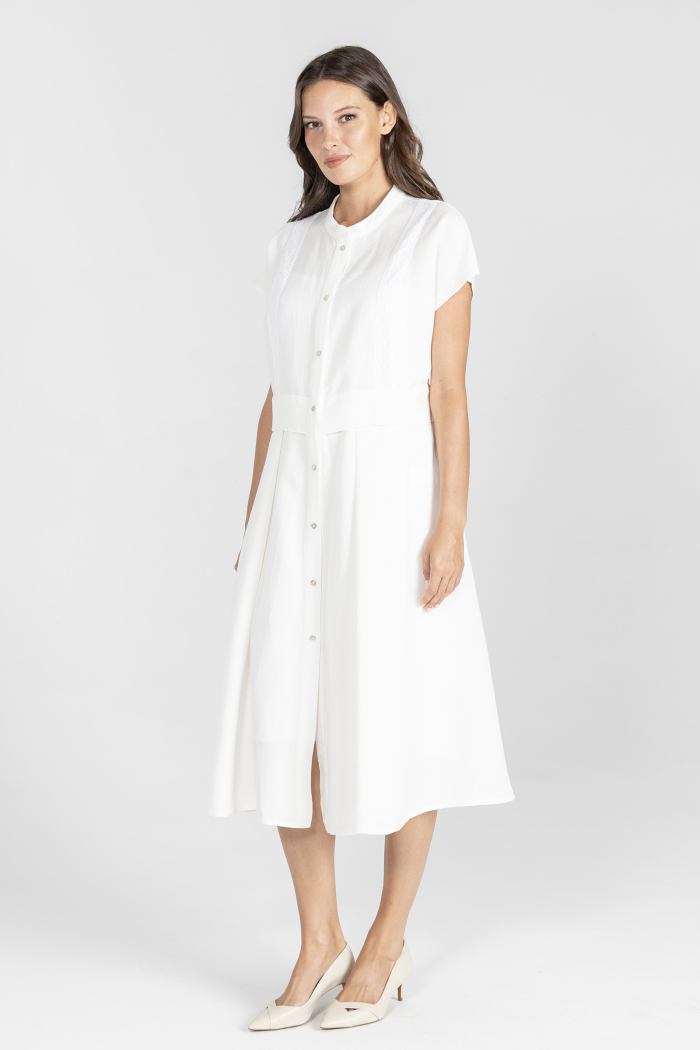 Biznesowa sukienka z wiązaniem w pasie w kolorze błękitnym