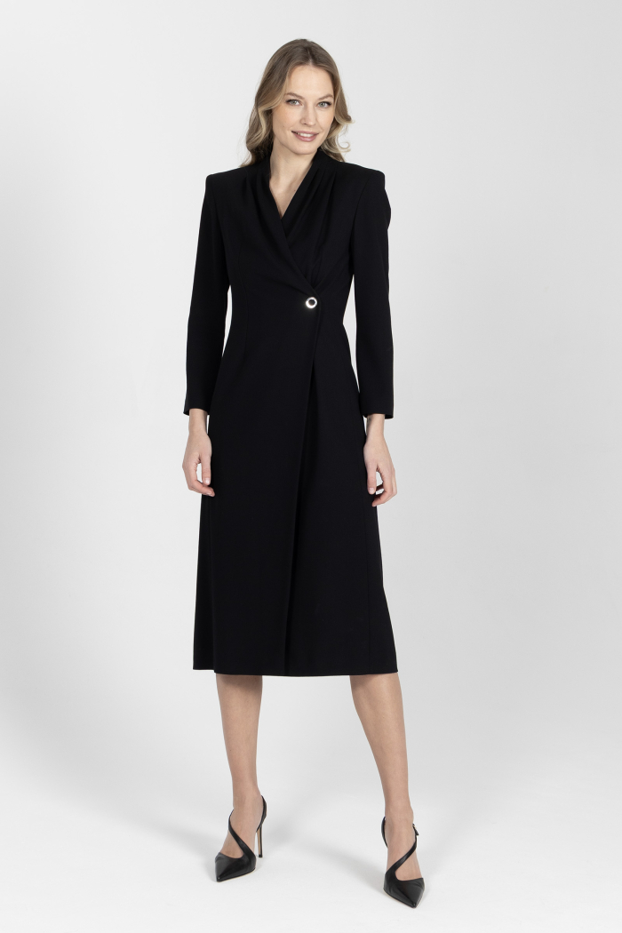 Czarna sukienka z tkaniny typu cady z ozdobnym zapięciem