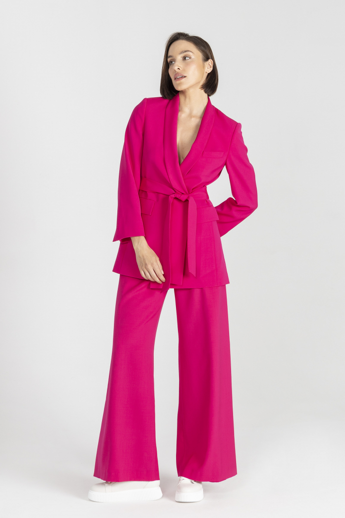 Eleganckie spodnie z szeroką nogawką w odcieniu magenty