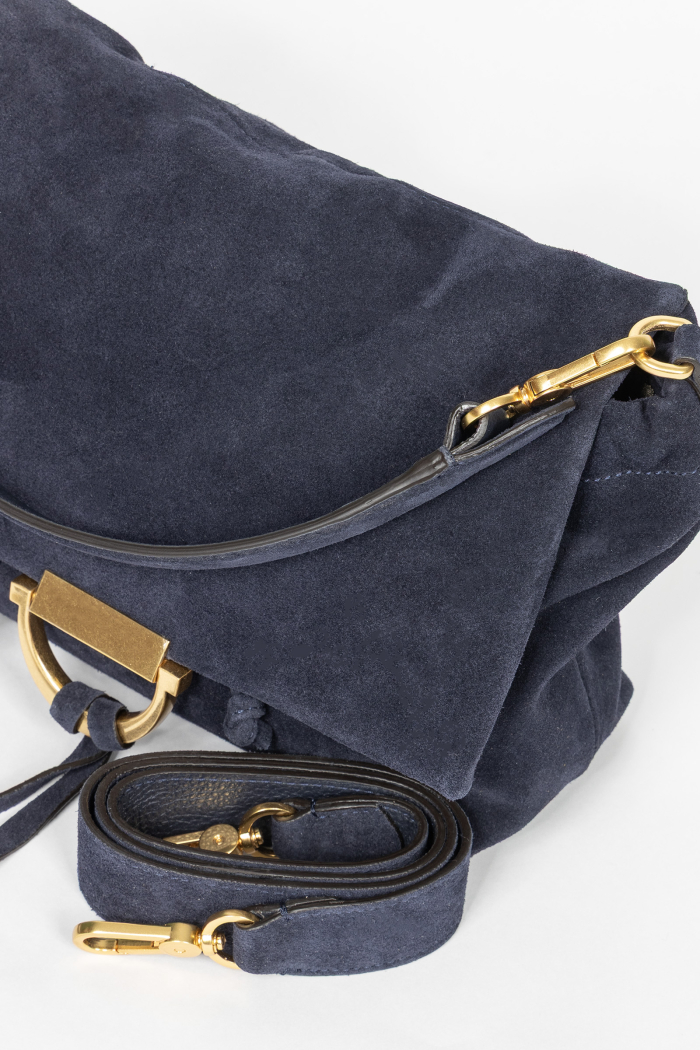 Mała zamszowa granatowa torebka